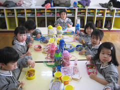 毎週水曜日は、お家の方の手作りお弁当です。大好きなおかずや、ごほうびも入っていて子供達は大喜び。