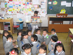 大好きな肝油を食べたら先生の紙芝居のはじまりはじまり~。