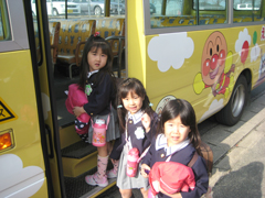 バスが到着したら、玄関で園長先生がお出迎え。元気に「おはようございます!」出席シールを貼って、体操服にお着替えします。(7:00~8:30 早朝預かり保育)